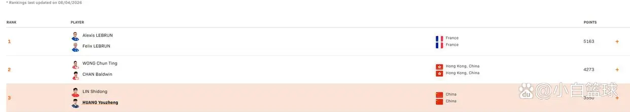 黄友政在2025赛季末尾就已经开始兼项,他在2026年WTT新加坡大满贯与林诗栋搭档拿到了男双亚军,在更早的WTT马斯喀特站常规挑战赛他搭档林诗栋还拿到了男双冠军;1月31日的WTT支线赛他搭档温瑞博拿到多哈支线赛的男双亚军。