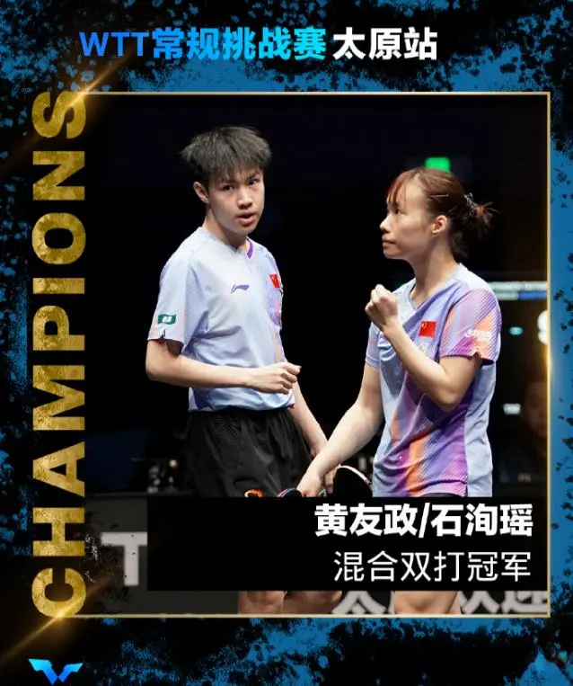 2026年WTT太原常规挑战赛混双决赛,黄友政/石洵瑶3-1黄镇廷/杜凯琹夺冠,四局:【11-7,11-9,6-11,11-7】。这场比赛黄友政与石洵瑶都打得挺轻松,可以说黄友政/石洵瑶将黄镇廷/杜凯琹打得毫无还手之力。